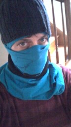 I had at least two of most everything on. Tights and jogging pants, two wicking shirts, a sweater, a nylon windbreaker with a busted zipper, a mask, a hat, two pair of gloves, shoes, socks and an ear warmer used to keep the mask down over the top of the sweater. I could wear it down across my legs and ass, I found, and block wind at my back. The windbreaker could be useful even if it didn’t zip up, which would’ve made me sweat a bunch and that would’ve gotten me chilled. I could wear it like a Roman cape, all slouched down and dragging.
