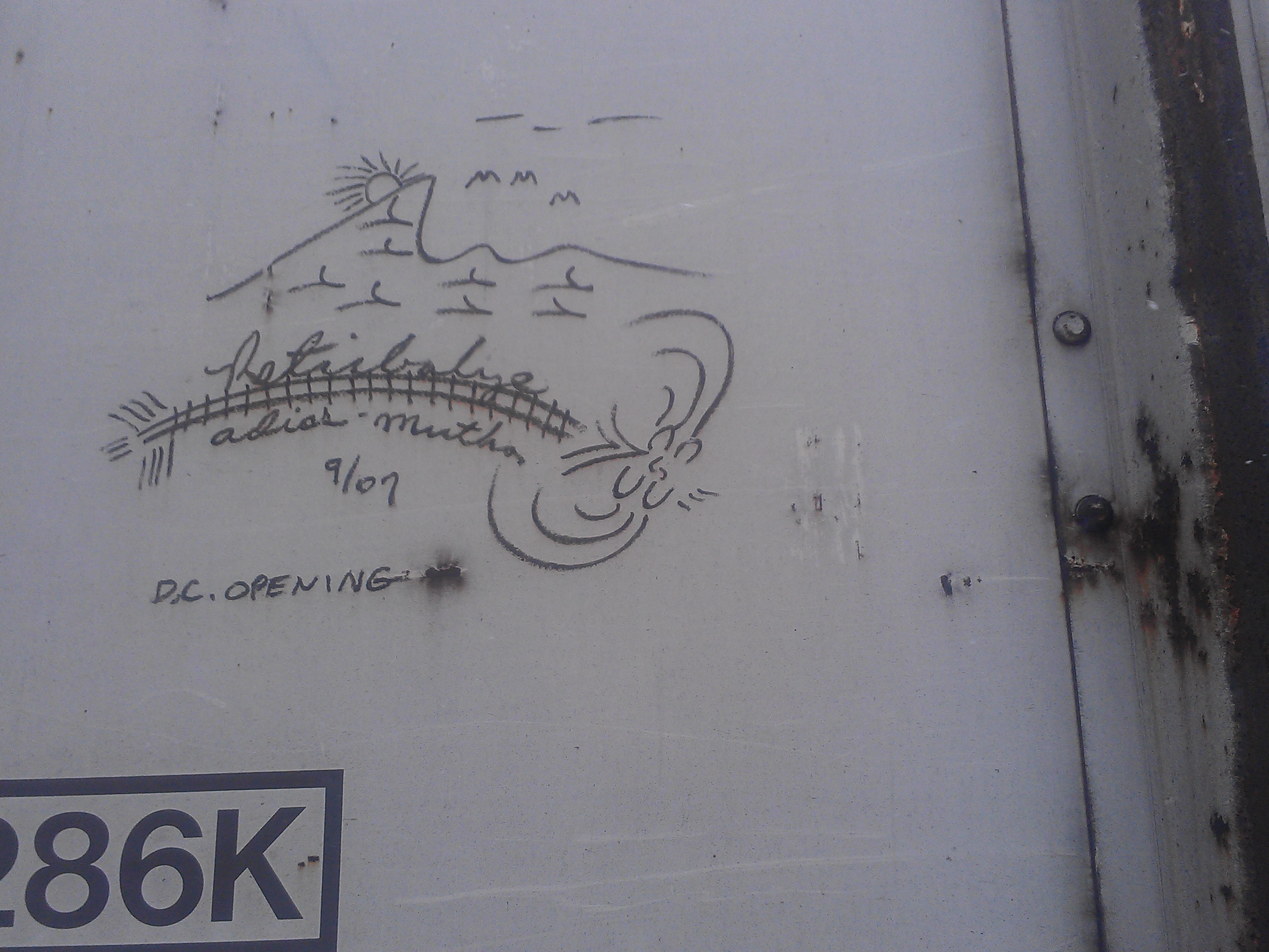 My favorite moniker was used by Travis “Conrail Twitty” Conner, who apparently died. He worked on the railroad, and he tagged cars. I backpacked and hitchhiked across Alaska and Europe when I was younger, and I was able to make enough to keep moving, but I used the youth hostel network instead of rail cars.