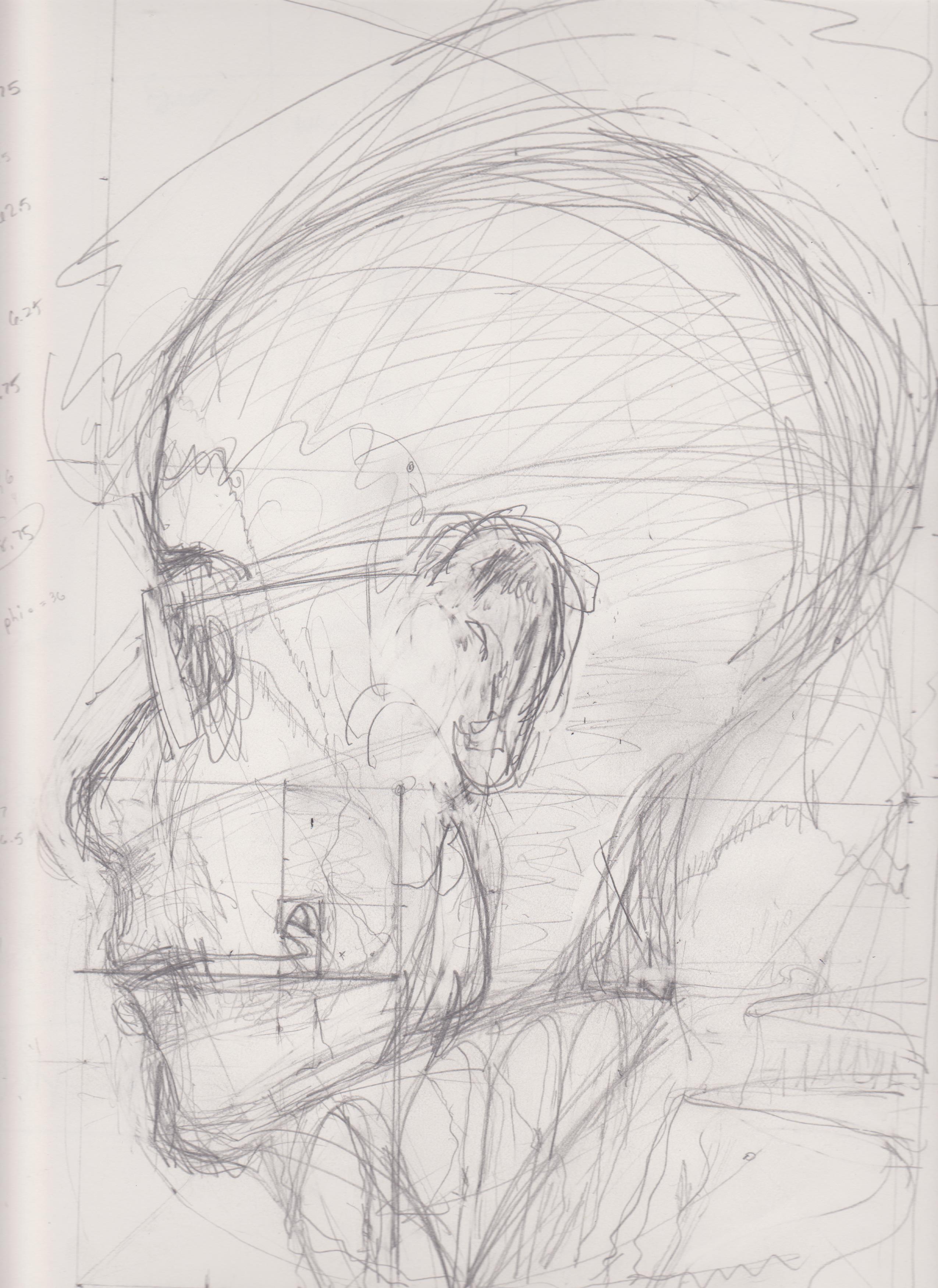 By fiftystatebanana Posted on April 8, 2014April 8, 2014 Sketch – Tunneled Cheek If I step back and hold this at an angle it seems less angular and severe. I’m working out a picture and applied a phi ratio to some of the contours of this profile. neg 10 angle Improvement to the ear. And turning the face into a nice rug Share this: Click to share on Reddit (Opens in new window) Reddit Click to email a link to a friend (Opens in new window) Email Click to share on Mastodon (Opens in new window) Mastodon Like Loading... Related