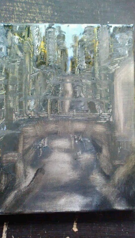 The sty was calling. It never enchanted me. The promise of slops, of warmth, the constant thrum of movement and syncopated activity, of the occupation of consuming, it never moved me. When I found that box, it was like a veil lifted, and I saw myself fighting shadows of dreams still unrealized. I saw an avenue of escape that had been lost, a choice I’d been unable to make. I found a way inside again. This discovery comes at a time when I’ve just begin to get solid footing in my new job. I’m a month into a new occupation, a different career. I can breather. Sometimes I don’t feel like vomiting or eating my sad. Sometimes I do. The job yoked me to new struggles. I’d dropped painting and everything, spent the last month working and sleeping, though I dreamed of work. Having found what I’d lost and desperately needed to function in society and support my kids (money, income) I couldn’t unplug at all, not even while asleep. I worked ridiculous hours, trying to crest the largest wave of ignorance I possibly could. No training, nothing but wolves and anxiety. Ugh.