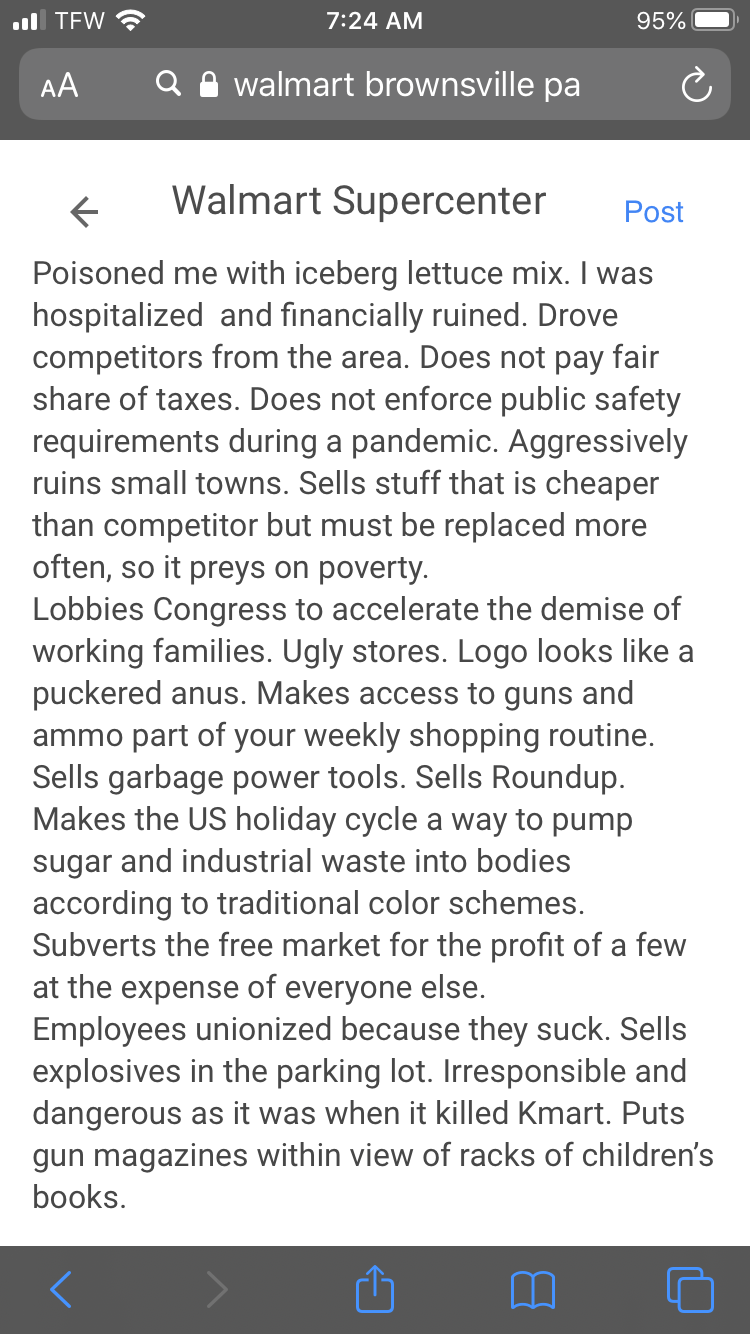 I bought iceberg lettuce mix at Walmart and ate the bag over a couple of days and started feeling awful. When I saw the recall on CNN, I noticed eastern US around me had reports of illness due to sick produce, but I was the first case reported to CDC from Pennsylvania through Pittsburgh Poison Control. I hope my call helped to rally resources to aid other sick people. Supplies are scarce and the staff at Uniontown hospital were so kind, so amazing. They saved my life!