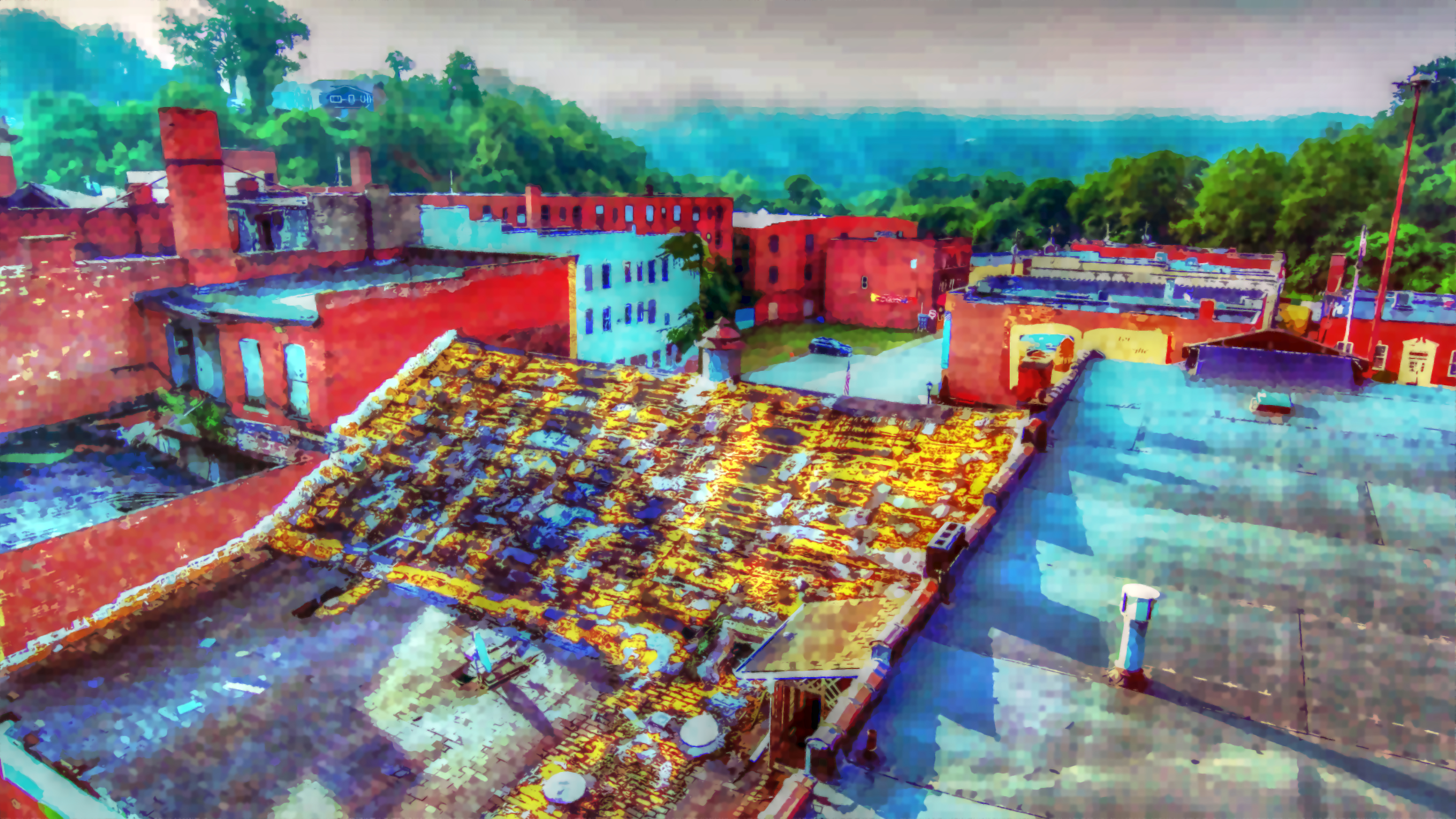 By fiftystatebanana Posted on August 11, 2020 Old roof in summer This is a bird’s eye view of my majestic areas. I made the image look like a generic vacation postcard. My town is basically 90% abandoned buildings. Share this: Click to share on Reddit (Opens in new window) Reddit Click to email a link to a friend (Opens in new window) Email Click to share on Mastodon (Opens in new window) Mastodon Like Loading... Related