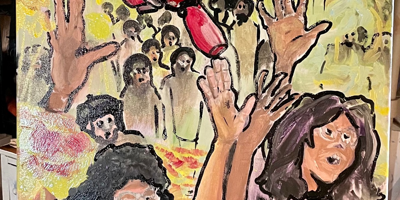 By fiftystatebanana Posted on June 6, 2021 Oil in Progress: Megaphone piece Oil on canvas 24” x 48” Share this: Click to share on Reddit (Opens in new window) Reddit Click to email a link to a friend (Opens in new window) Email Click to share on Mastodon (Opens in new window) Mastodon Like Loading... Related