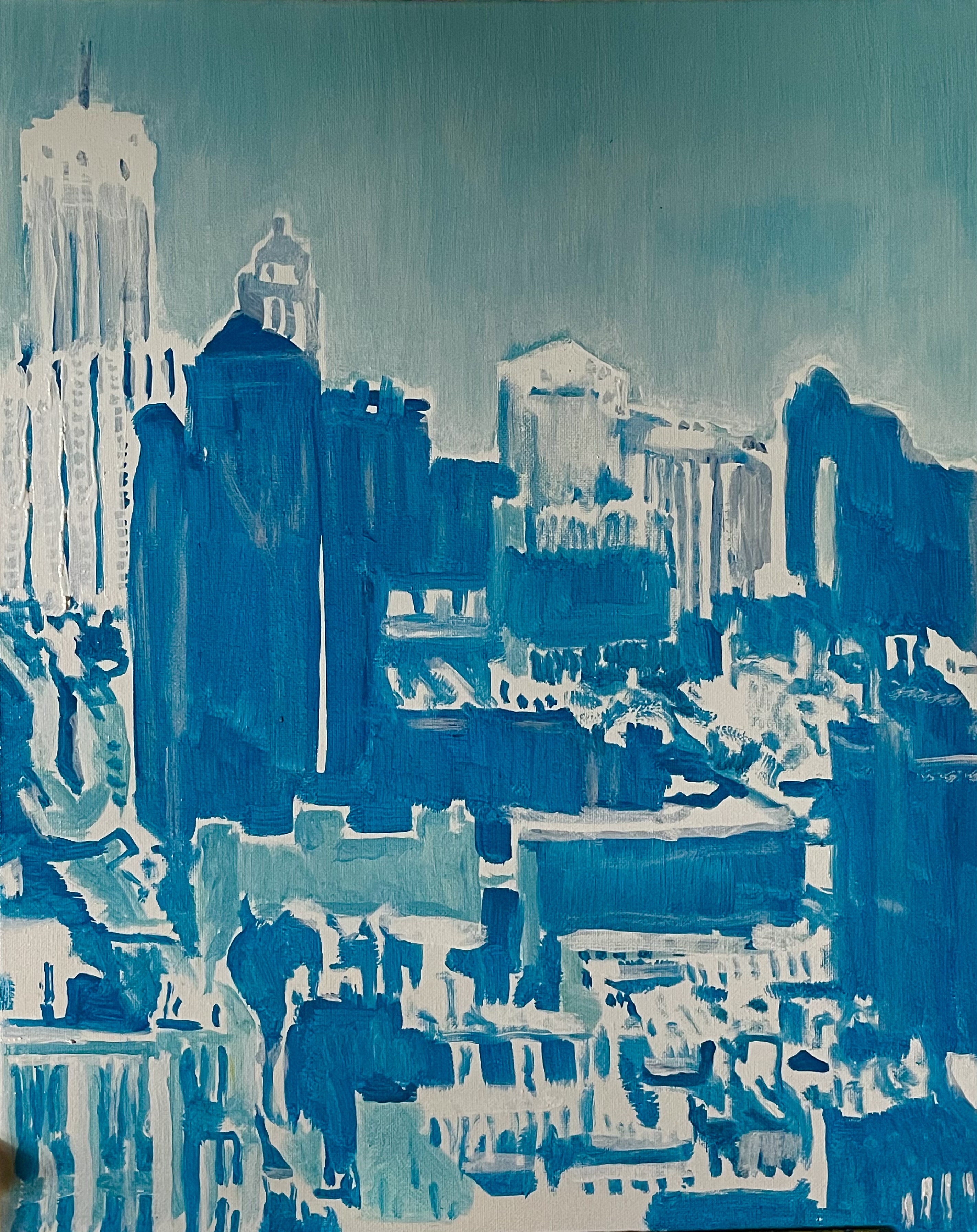 I have about four paintings underway: this one, a 2’ x 4’, and two other 16” x 20” efforts. I ran out of canvas. I was going to paint Matt from Wii Sports, Kanye, Christopher Walken, and Snagglepuss along with two stylized duck faces.