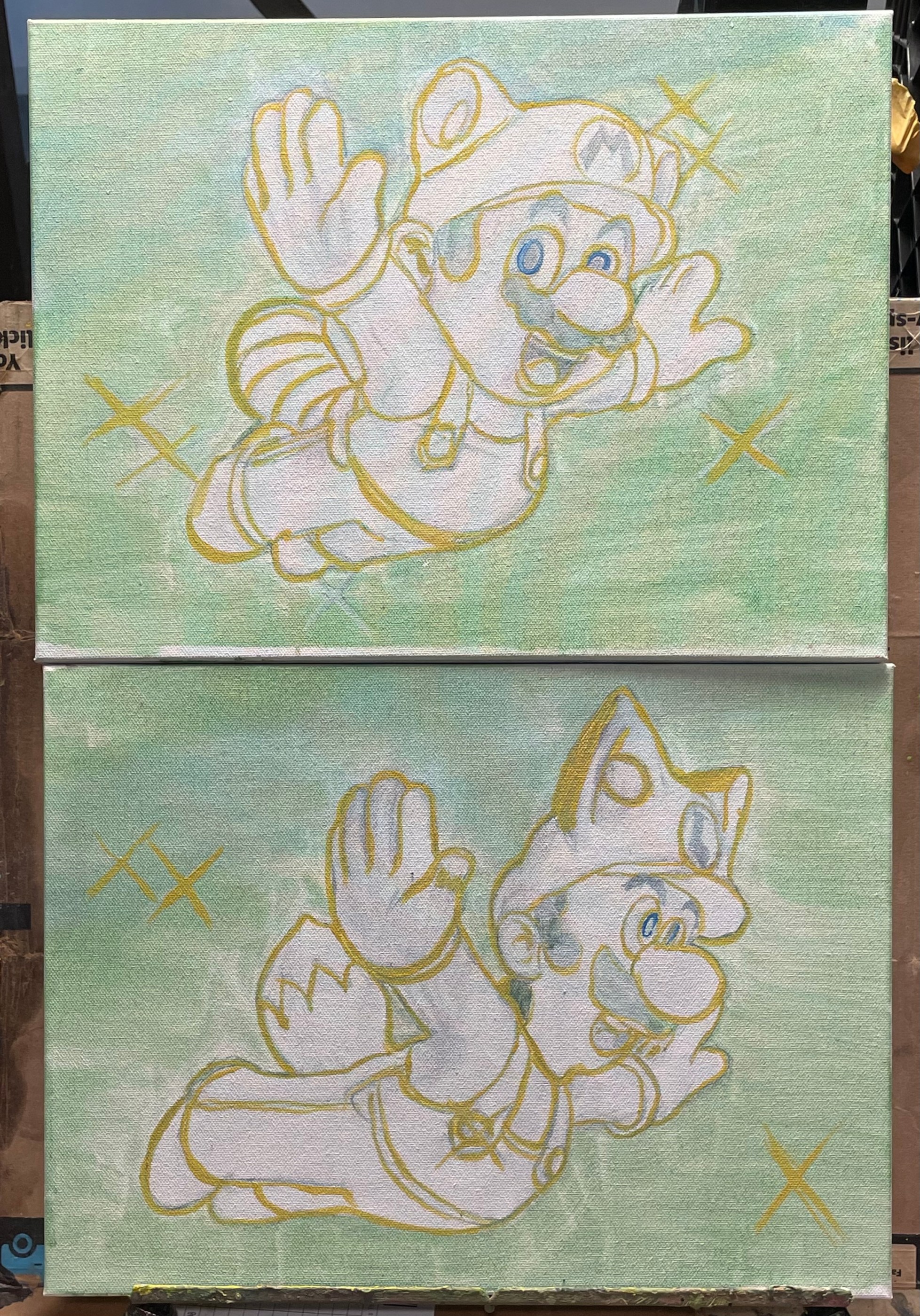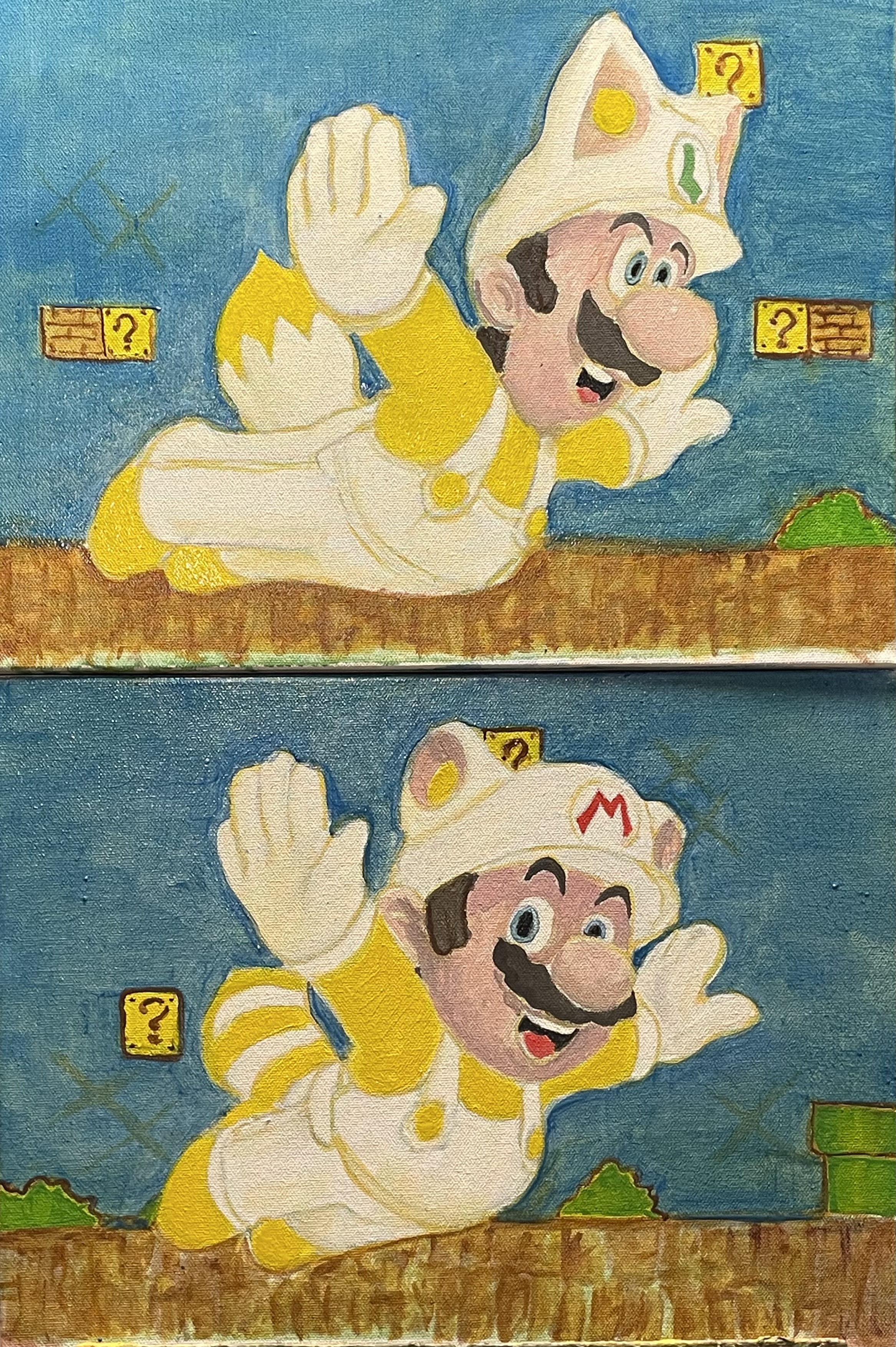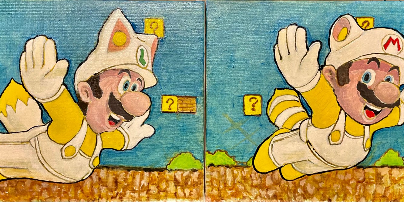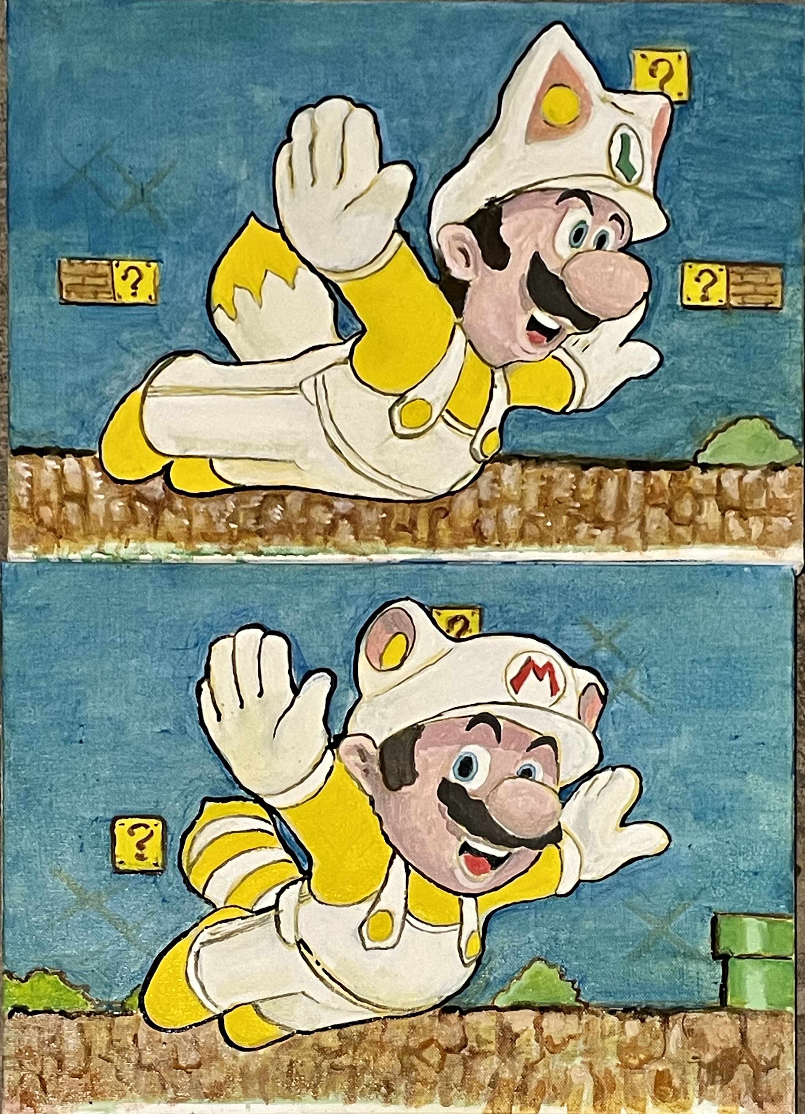 This is a commissioned pair of images. I am going to take a background from Super Mario 3 D World. EDIT: I chose a simple 2D backdrop from the original gameplay. I played Super Mario Bros as a child, too. It’s practically furniture.