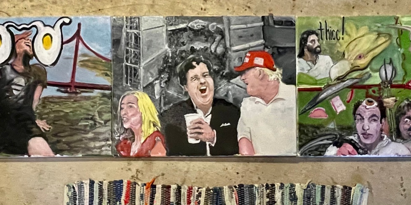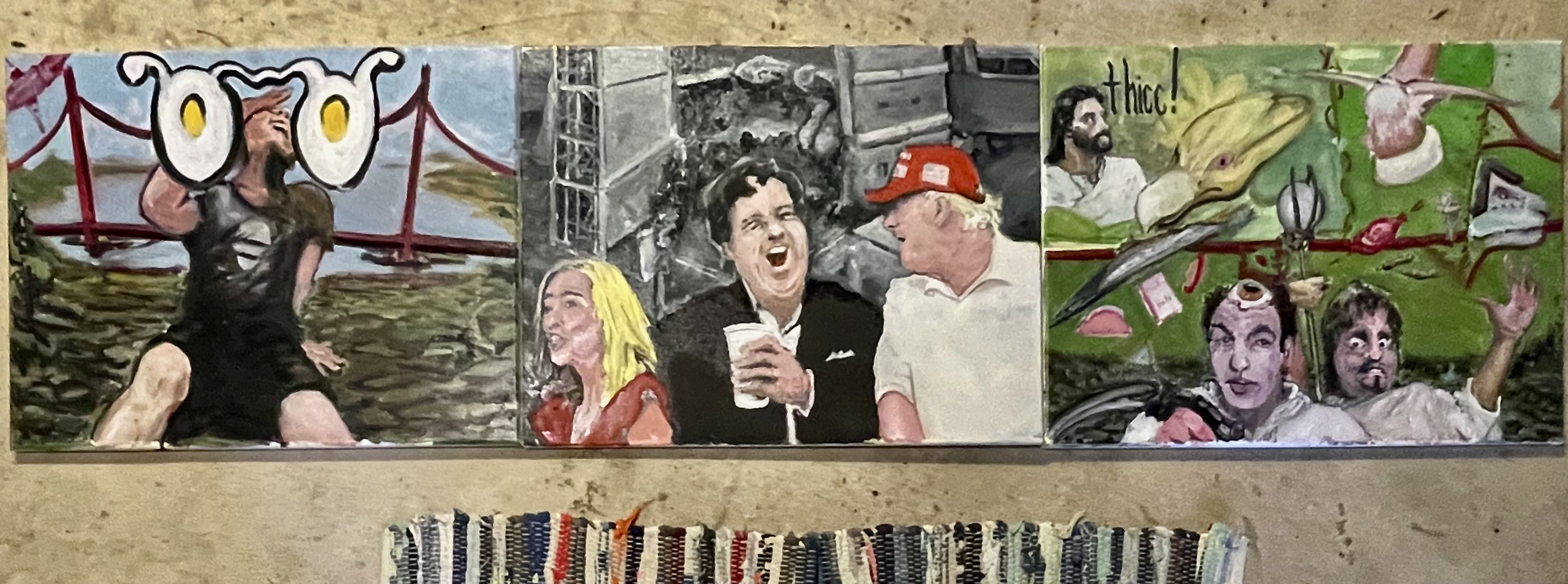 I am working on all three paintings in turns between drying. Some wet-on-wet, some wet-on-dry. It’s coming along well. I don’t want to have to write an essay about the work, but I will if it means a plate of buttered noddles, a 1959 Gold Sparkle Gretch drum kit set with all the pick-ups and headers, or possibly 200 pesos in small bills. The bar is getting lower than a limbo contest.