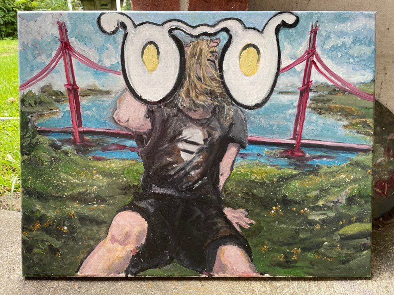 The first painting requires light upon the figure’s hair, petals on tiny foreground wildflowers, and band t-shirt artwork.