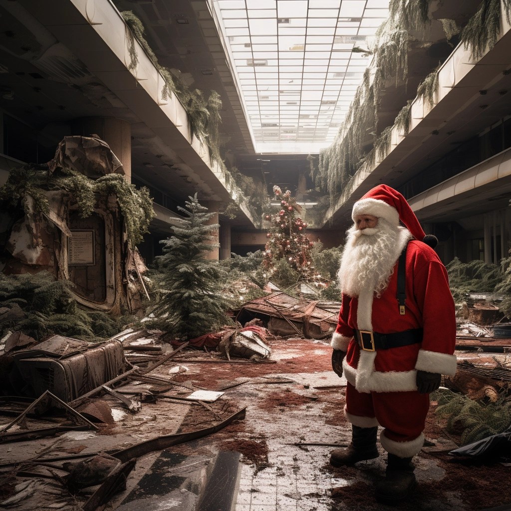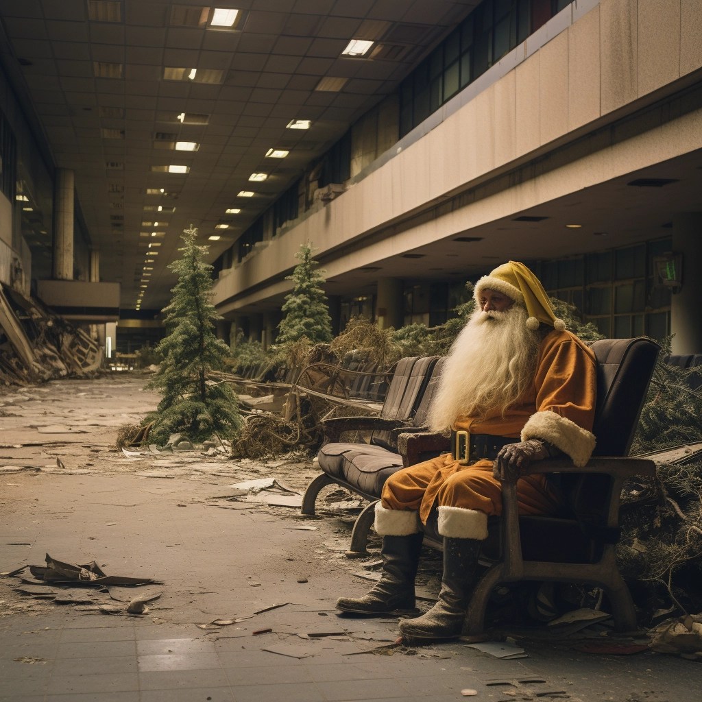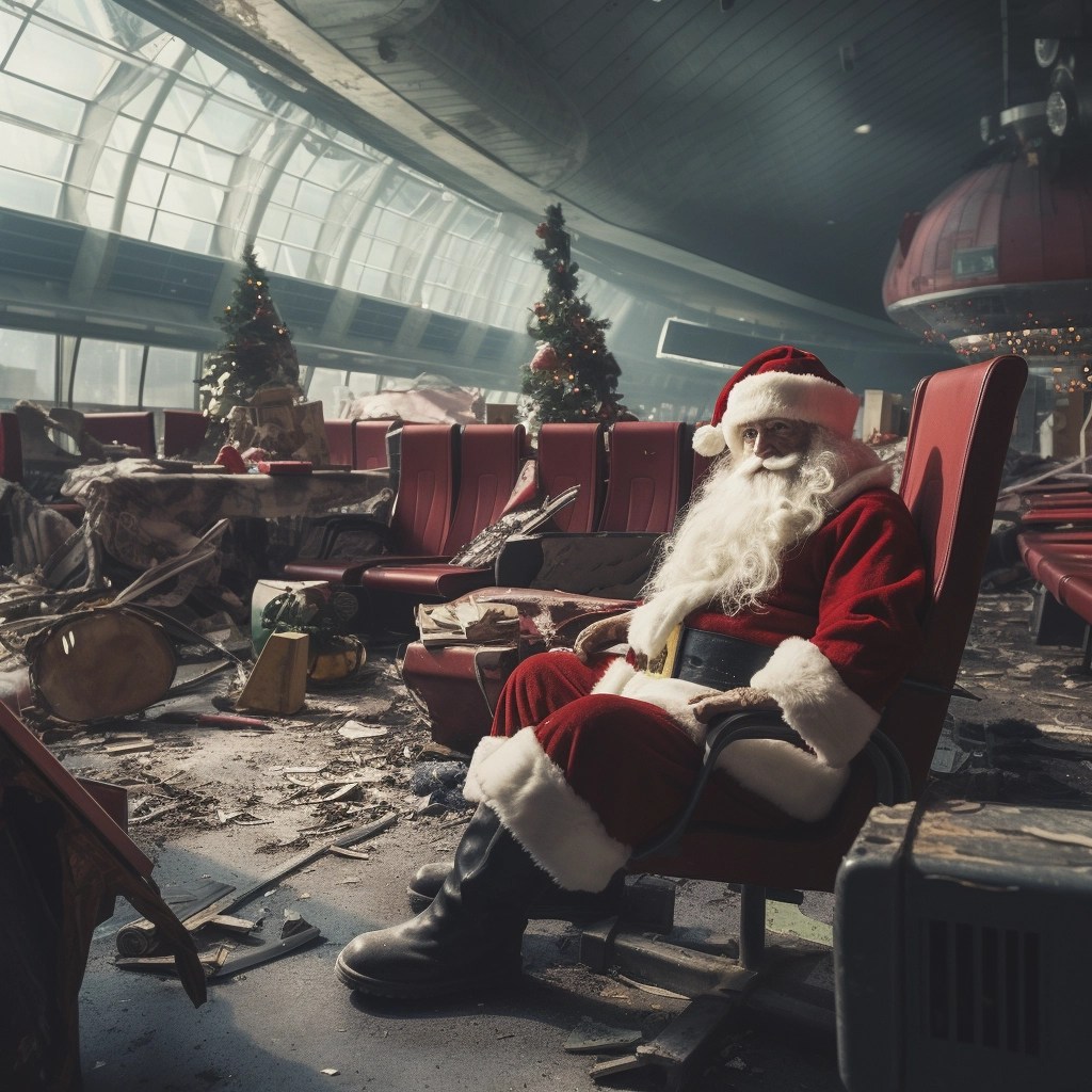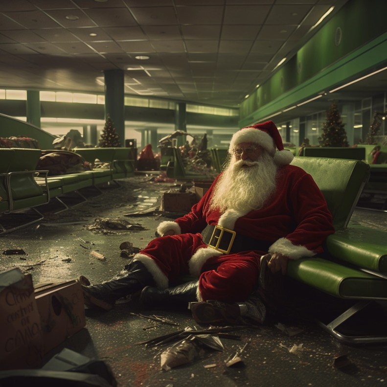 As we paced along Upon the giddy footing of the hatches, Methought that Grinch stumbled, and in falling, Struck me (that thought to stay him) overboard, Into the tumbling brutalist liminal space of Santa Claus Airport, 8K