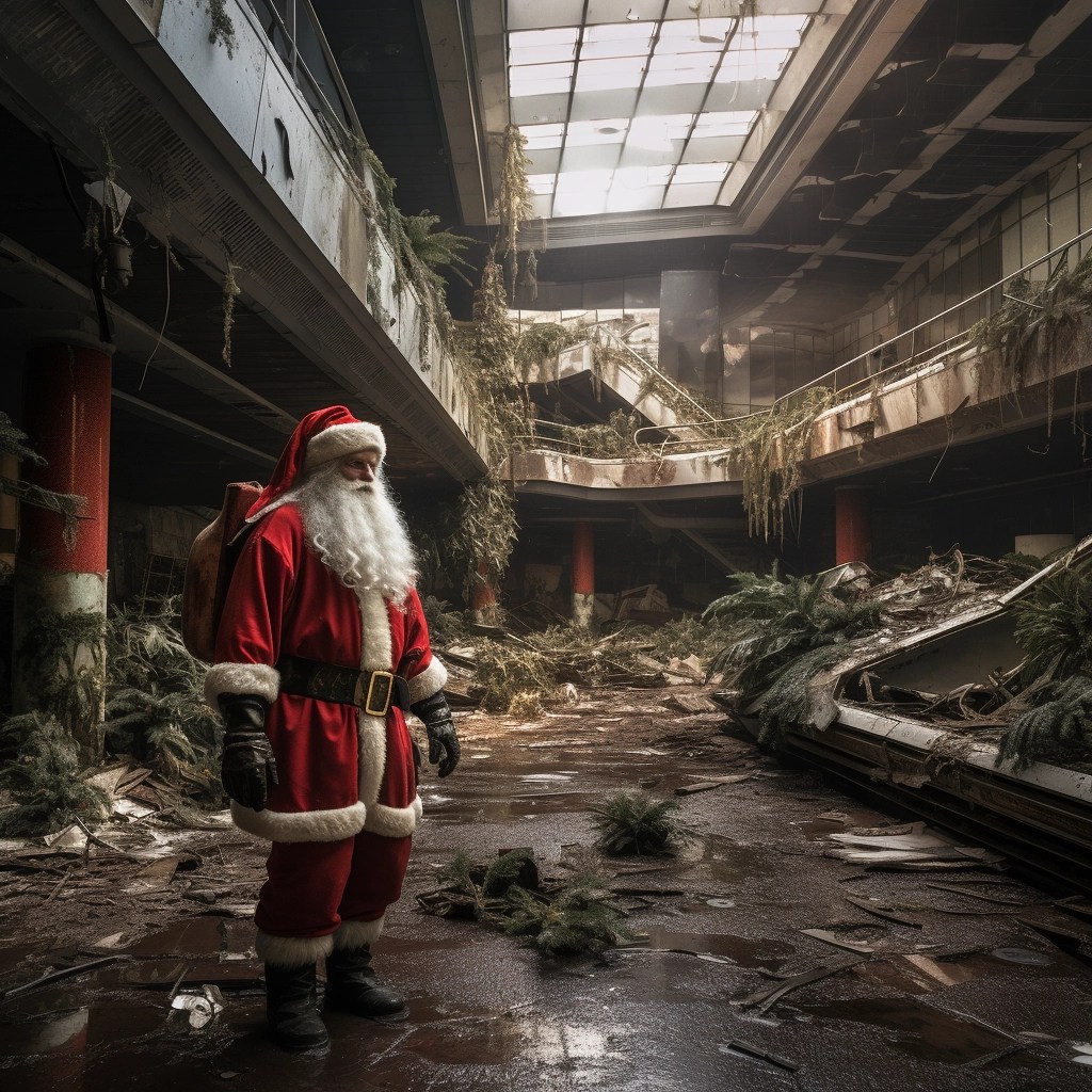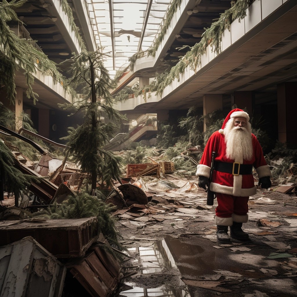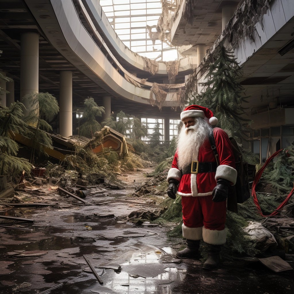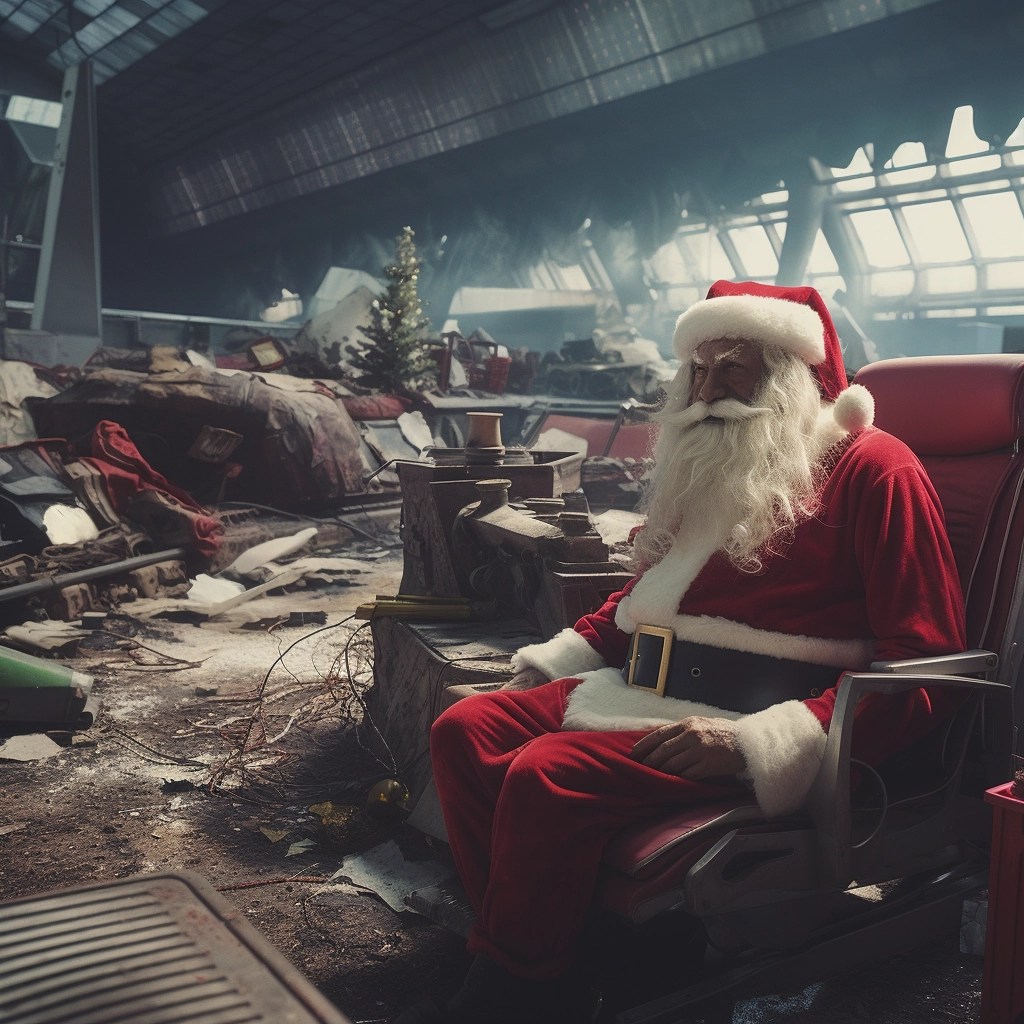 As we paced along Upon the giddy footing of the hatches, Methought that Grinch stumbled, and in falling, Struck me (that thought to stay him) overboard, Into the tumbling brutalist liminal space of Santa Claus Airport, 8K
