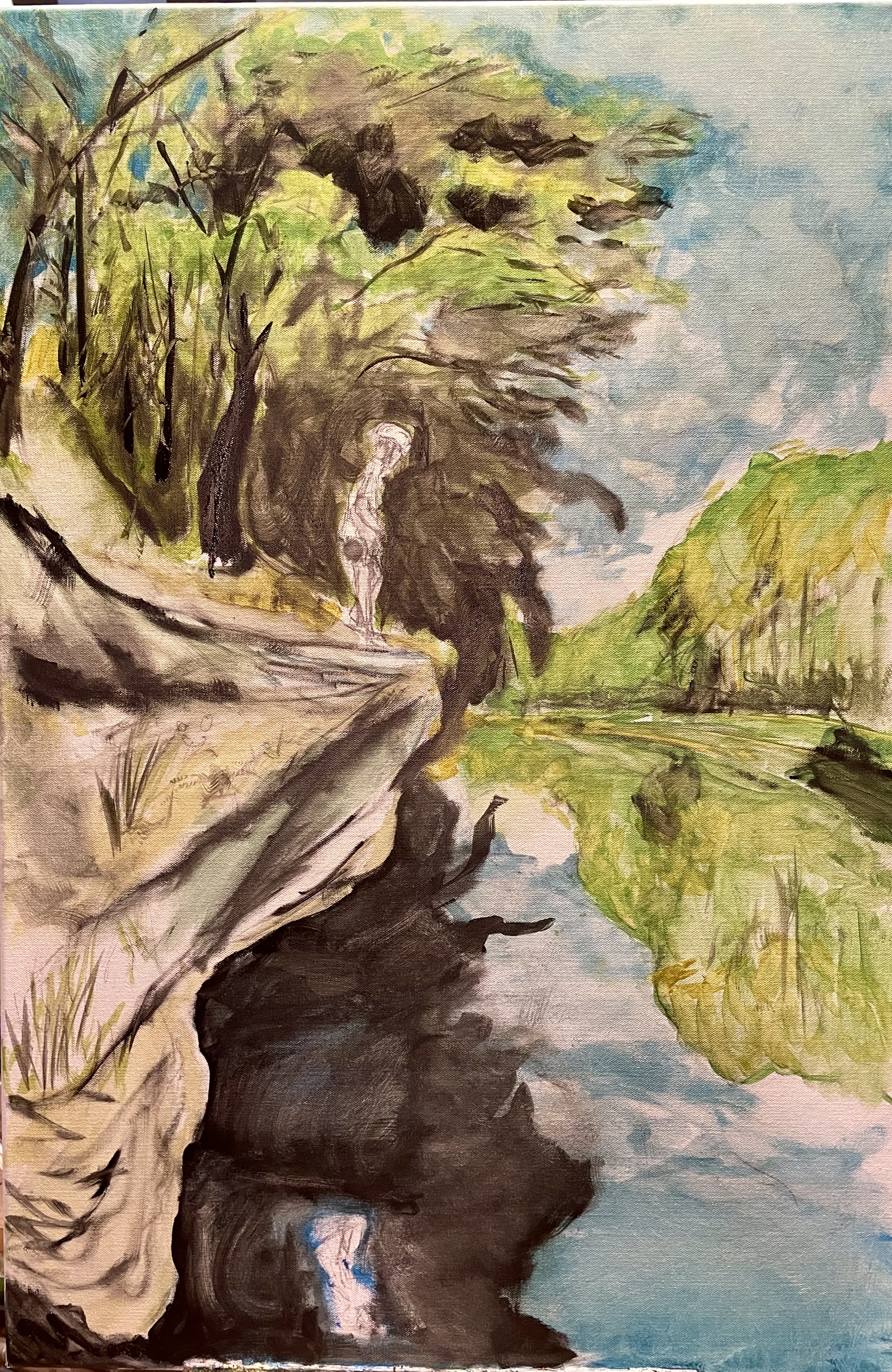 By fiftystatebanana Posted on February 11, 2024February 13, 2024 Trail side somewhere along Deep Creek, oil painting in progress 24”x36” oil on canvas 2-3 hours in. Share this: Click to share on Reddit (Opens in new window) Reddit Click to email a link to a friend (Opens in new window) Email Click to share on Mastodon (Opens in new window) Mastodon Like Loading... Related