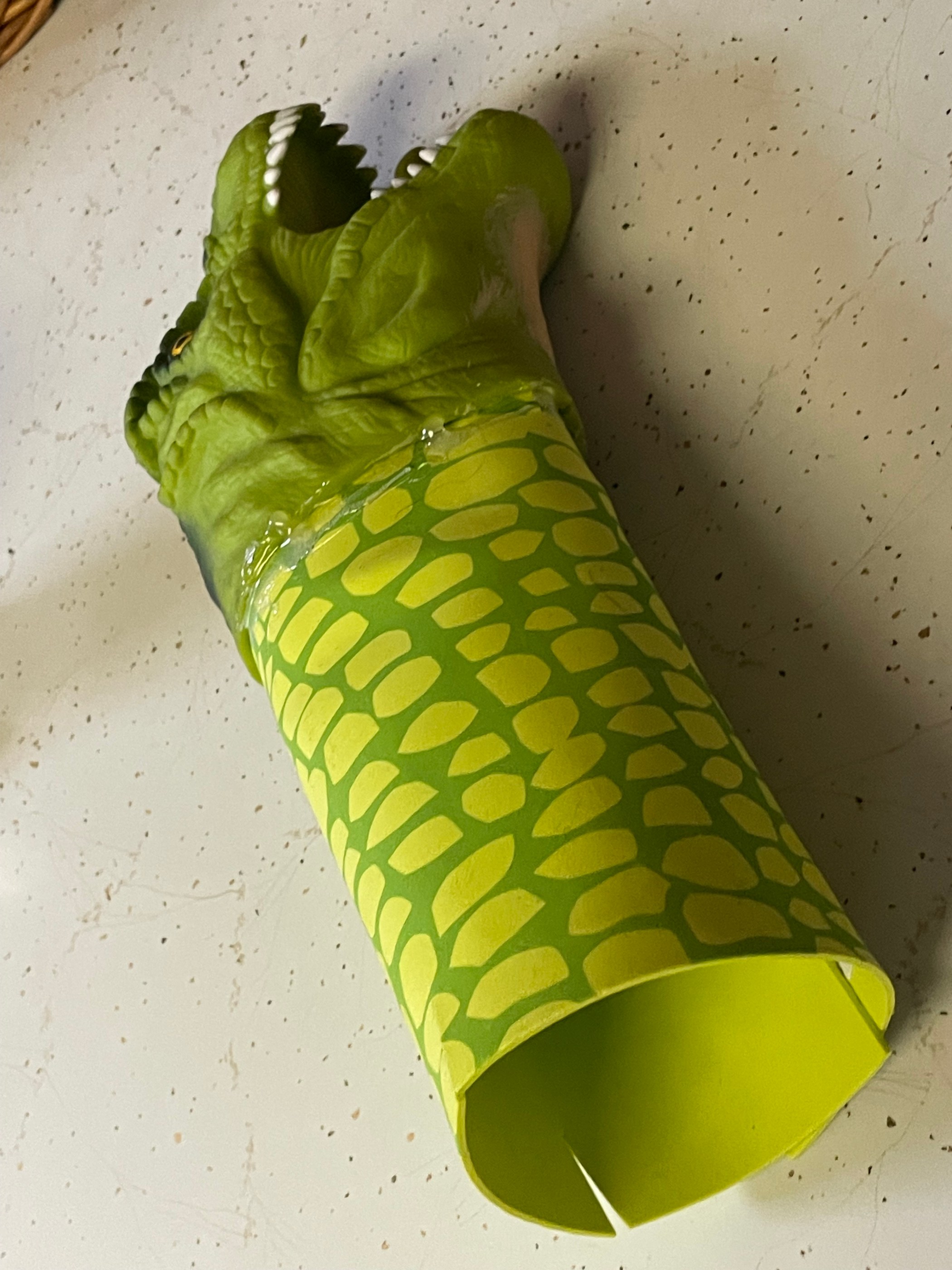 All of this is hanging from the ceiling. I have to dig up a phone mount for my tripod. It handles low light. I am working as an art teacher by day, so I have been turning out tons of goofy projects. This is one that I love. Godzilla’s thoughts and questionable intelligence is a double-dipped gold mine.