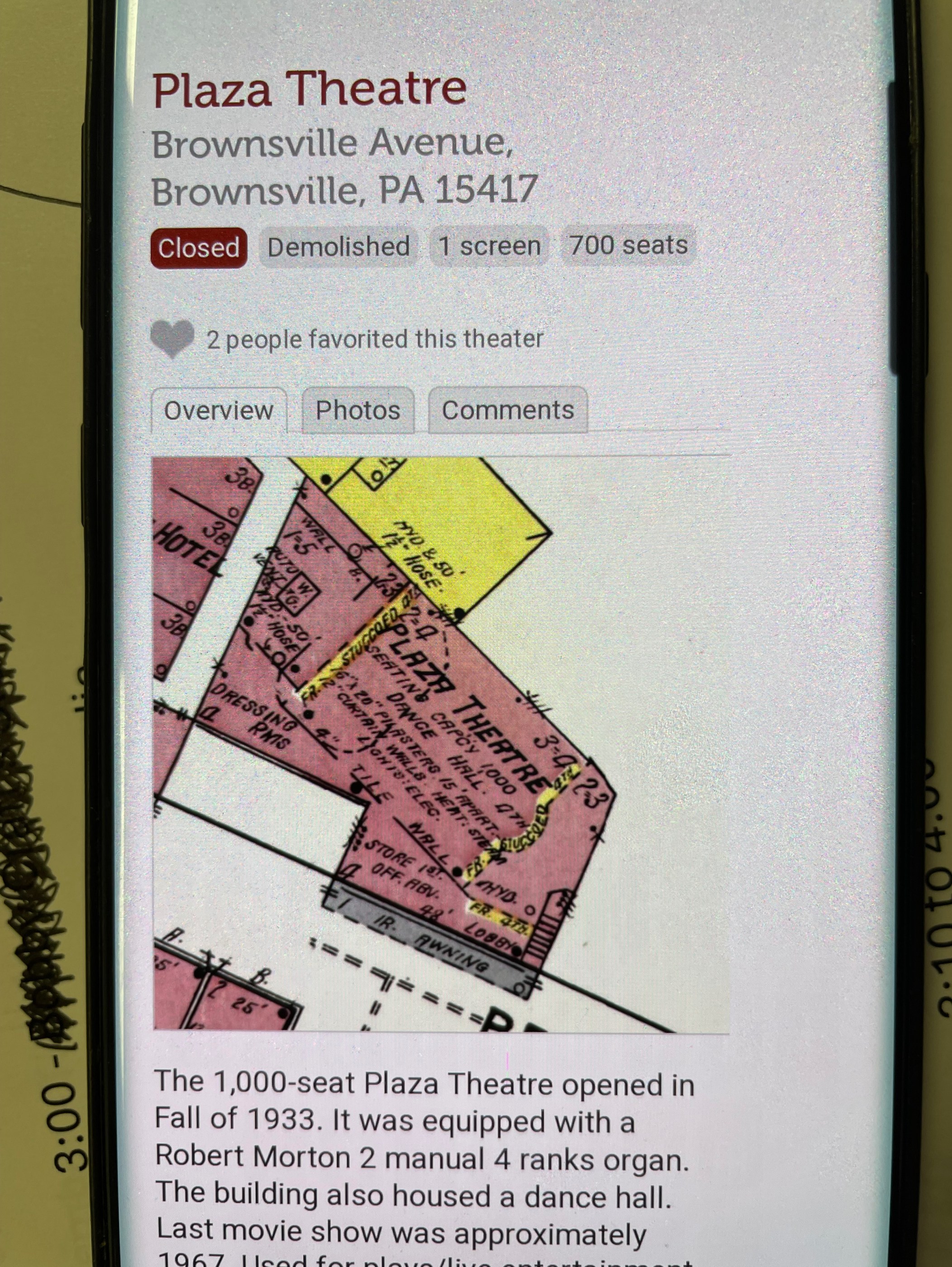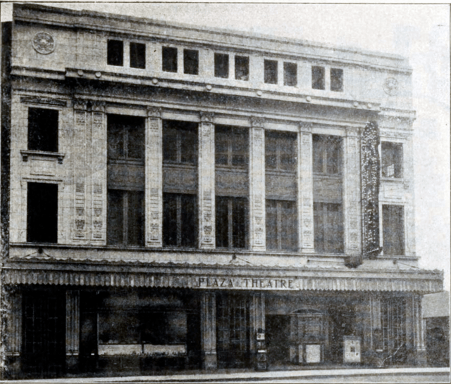 The theatre had a balcony and an upper balcony. The fitting room for shows was off-stage. The facade had large Corinthian columns and a 48-foot lobby.