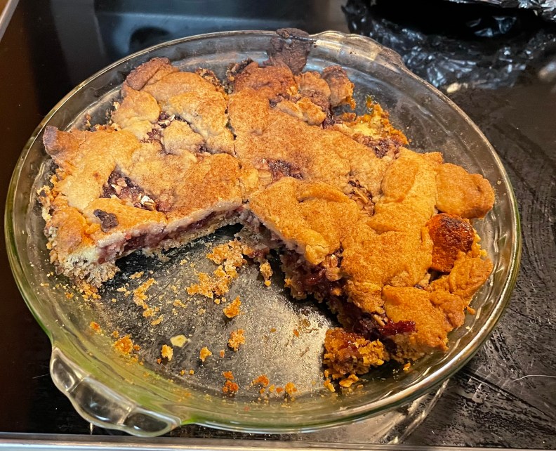 - Use a spoon to chip the strips off the bowl, build a lattice on top of the pie. If it looks bad, buy a fancier paper plate set for the league.