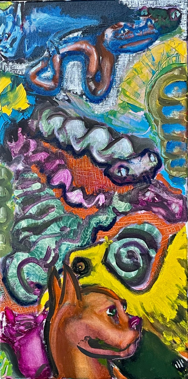 snakes, a dog, a bird, guts, a flower, blobs – a study in shaky dragon technique, or some such