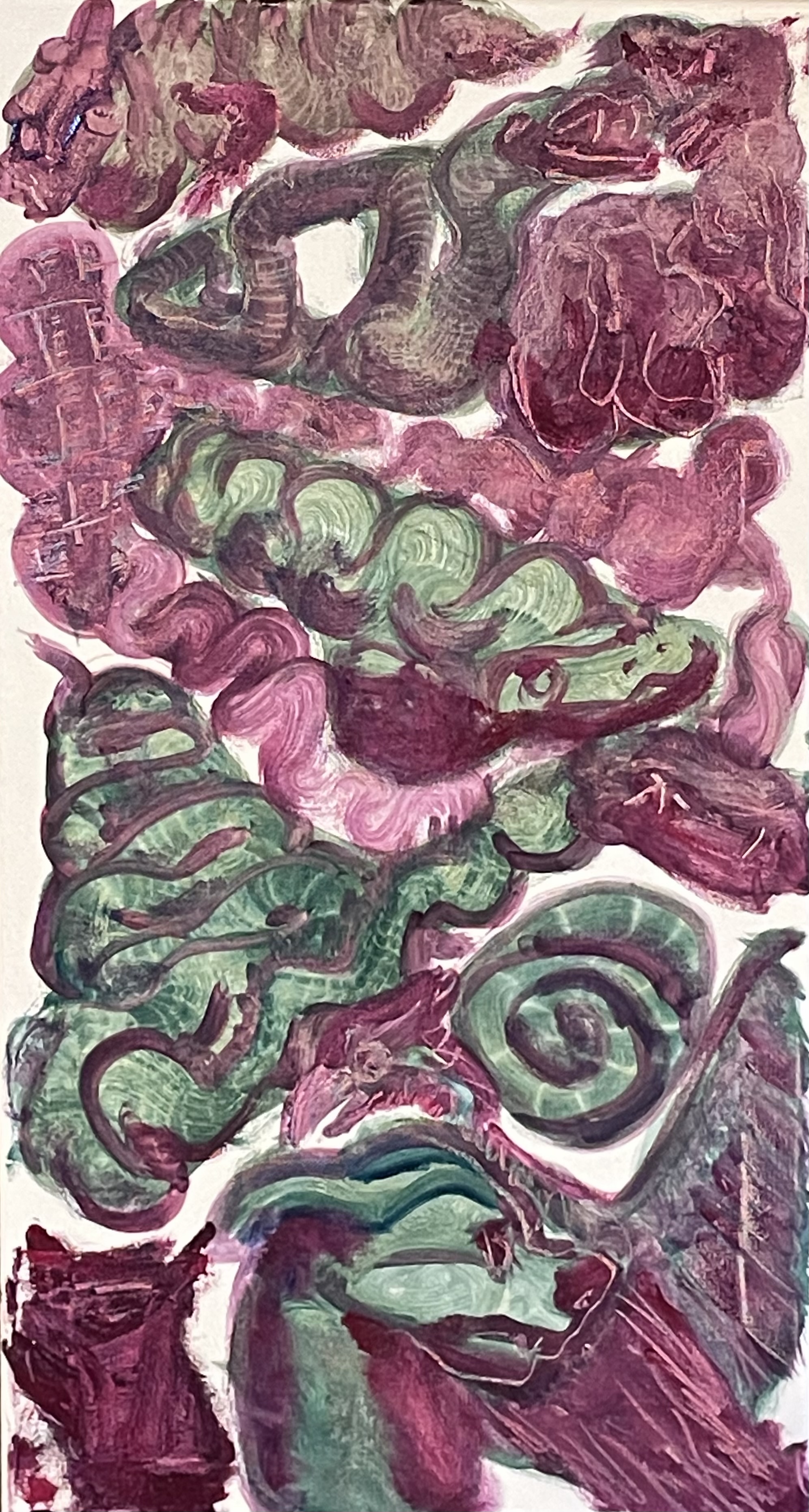 snakes, a dog, a bird, guts, a flower, blobs – a study in shaky dragon technique, or some such