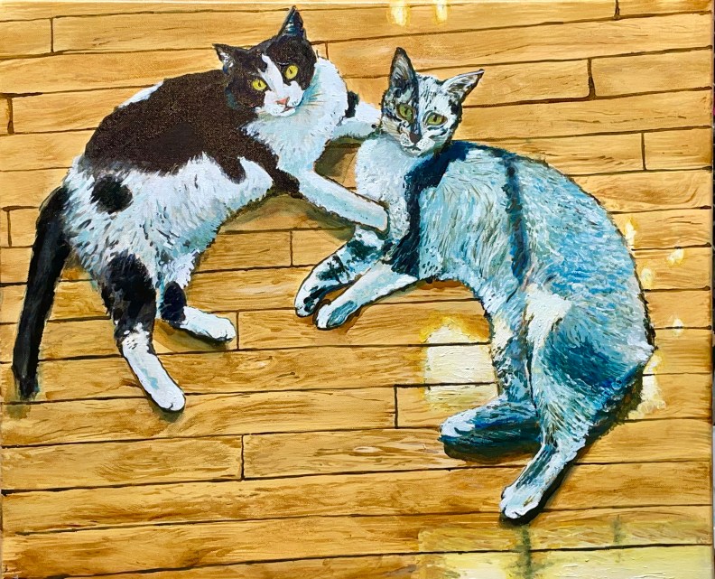 By fiftystatebanana Posted on November 24, 2024November 24, 2024 Finished #115, oil on canvas 24”x20” Strays Share this: Click to share on Reddit (Opens in new window) Reddit Click to email a link to a friend (Opens in new window) Email Click to share on Mastodon (Opens in new window) Mastodon Like Loading... Related