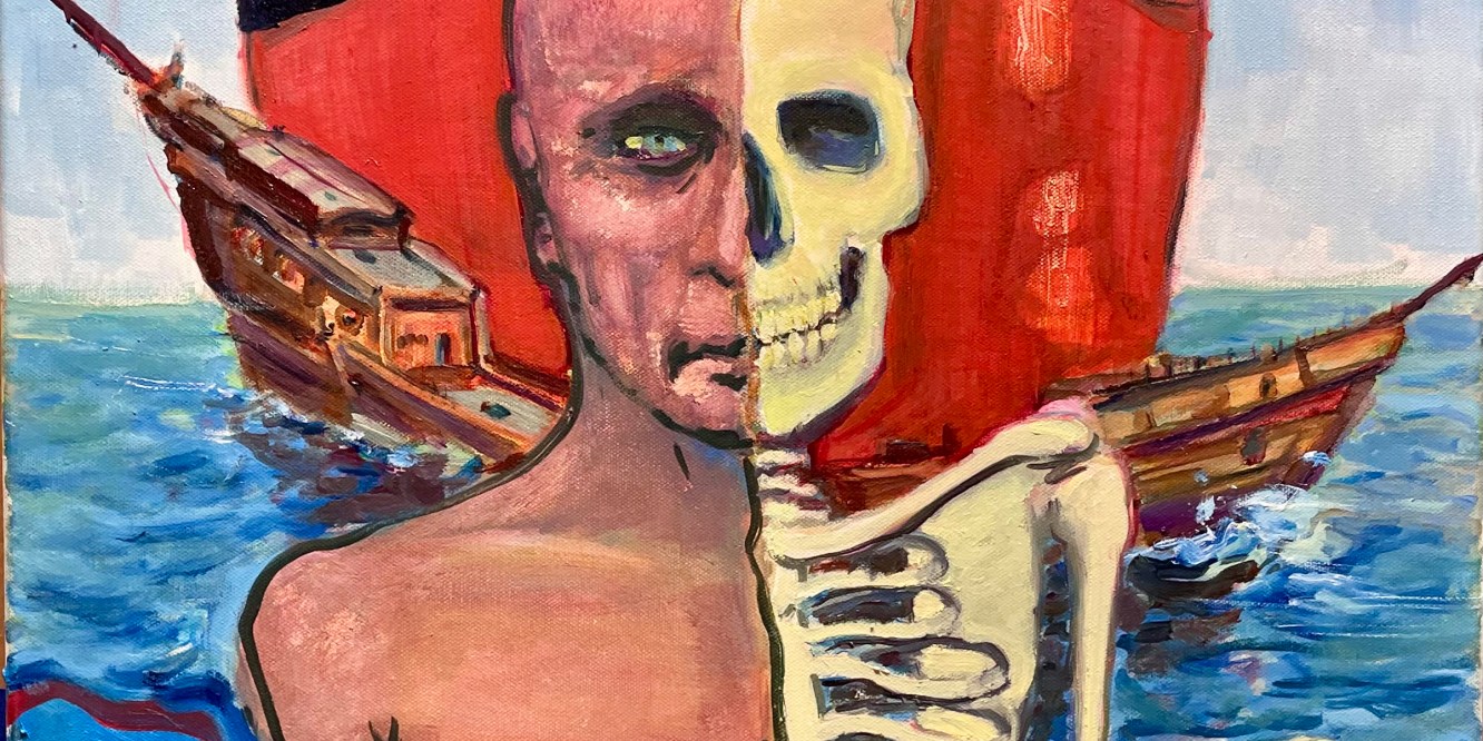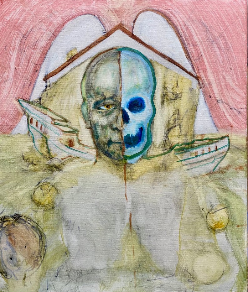 By fiftystatebanana Posted on January 12, 2025January 26, 2025 ”If Only Someone Had Written a Book on Avoiding Large Ships” 20”x24”, oil on canvas pencil, sharpie, acrylic sealer I am better at drawing than painting. I like challenges. So, a week later after recovering from a bad cold or another. Relentless forward calamity I have no idea. Walking away after one more session. From a large ship. Share this: Click to share on Reddit (Opens in new window) Reddit Click to email a link to a friend (Opens in new window) Email Click to share on Mastodon (Opens in new window) Mastodon Like Loading... Related
