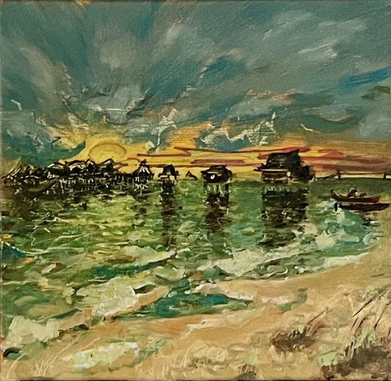 By fiftystatebanana Posted on June 16, 2025June 18, 2025 “Bajua Sunrise” oil on canvas, 12”x12” Applied acrylic sealer over pencil/marker Share this: Click to share on Reddit (Opens in new window) Reddit Click to email a link to a friend (Opens in new window) Email Click to share on Mastodon (Opens in new window) Mastodon Like Loading... Related