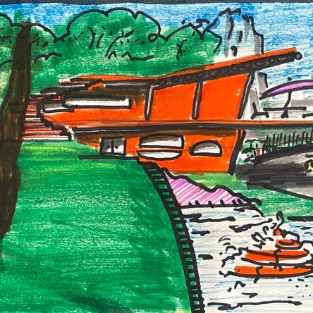 Style generation on marker sketch. I have dreamed about this place for nearly half a century. You can see out of the upper wall panels, but not in. Skinny Van … Continue reading House in Hill