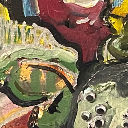 This is a found painting by Ruth Kratz I defaced with the word ‘COVFEFE’ and an image of a demon offering meat to the viewer. Meanwhile, the bird is ironically … Continue reading Touch-up of “Light ‘n’ Heat 4 Cure”