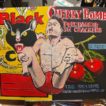 Acrylic on four 12”x10” canvas boards. Chinese call firecrackers “exploding bamboo” because hot air trapped inside bamboo will explode. Black Cats are gunpowder paper cylinders that explode on a noisy … Continue reading “Firecracker diver” in progress