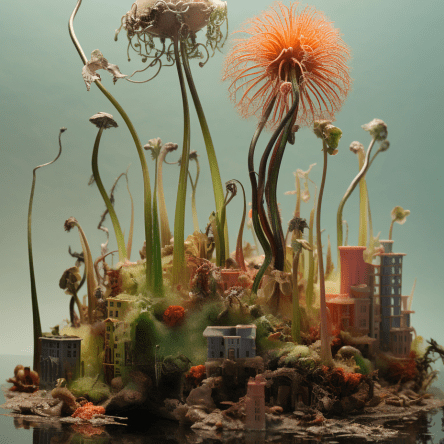 Midjourney mix of image with “arboreal noodle utopial” I love ramen noodles.