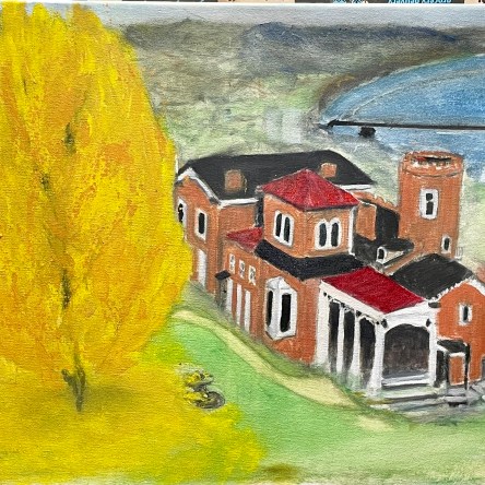 Oil on flappy loose canvas from Walmart, omg. Work in progress, forced perspective. AR 4:3 I have been a month battling seasonal illness, including but not limited to flu. There … Continue reading Nemacolin Castle and Gingko Tree